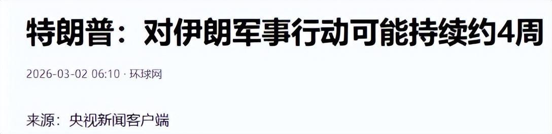 毕竟美以刚发动军事打击时,特朗普怕是想着速战速决,结果如今不仅松口和谈,还一改此前的口风,称对伊朗的军事行动可能要持续4周左右,还美其名曰“政府的预期判断”。