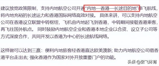 这份建议听起来有点专业,说的是支持香港国际机场更好地融入整个国家的民航体系里面去。